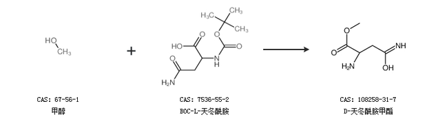 1.通过甲醇和BOC-L-天冬酰胺合成D-天冬酰胺甲酯