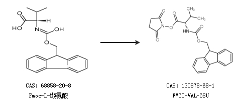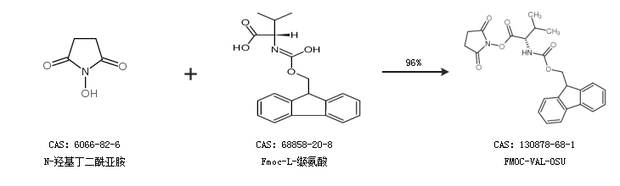 1.通过N-羟基丁二酰亚胺和Fmoc-L-缬氨酸合成FMOC-VAL-OSU,收率约96%;