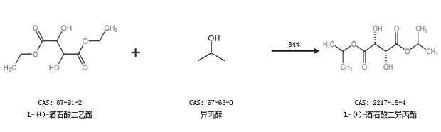 1.通过L-(+)-酒石酸二乙酯和异丙醇合成L-(+)-酒石酸二异丙酯,收率约84%;