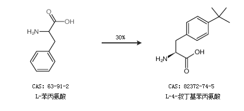 1.通过L-苯丙氨酸合成L-4-叔丁基苯丙氨酸,收率约30%;