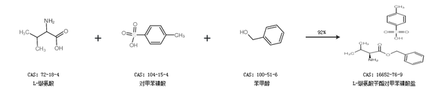 1.通过L-缬氨酸、对甲苯磺酸和苯甲醇合成L-缬氨酸苄酯对甲苯磺酸盐,收率约92%;