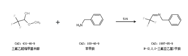 1.通过苯甲胺和1-乙氧基-2,2,2-三氟乙醇合成N-(2,2,2-三氟亚乙基)苄胺,收率约67%;