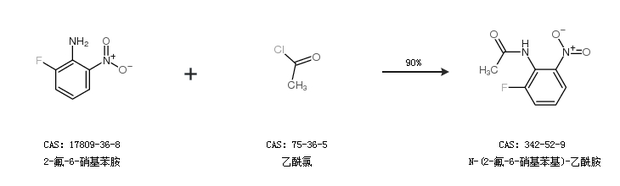 1.通过2-氟-6-硝基苯胺和乙酰氯合成N-(2-氟-6-硝基苯基)-乙酰胺,收率约90%;