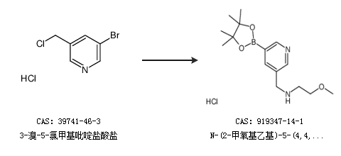 2.通过3-溴-5-氯甲基吡啶盐酸盐合成N-(2-甲氧基乙基)-5-(4,4,5,5-四甲基-1,3,2-二噁硼烷-2-基)-3-吡啶甲胺