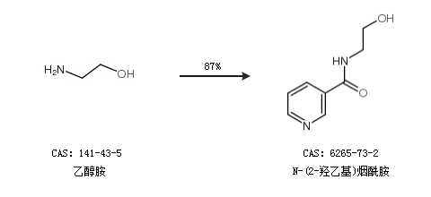1.通过乙醇胺合成N-(2-羟乙基)烟酰胺,收率约87%;
