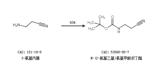 1.通过3-氨基丙腈合成N-(2-氰基乙基)氨基甲酸叔丁酯,收率约93%;