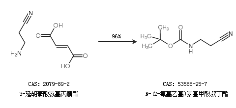 2.通过3-延胡素酸氨基丙腈酯合成N-(2-氰基乙基)氨基甲酸叔丁酯,收率约96%;