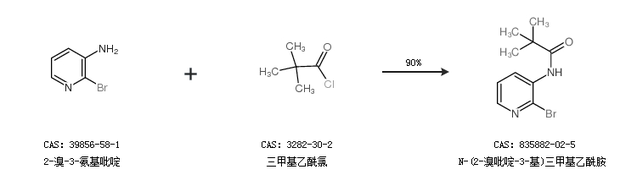 1.通过2-溴-3-氨基吡啶和三甲基乙酰氯合成N-(2-溴吡啶-3-基)三甲基乙酰胺,收率约90%;