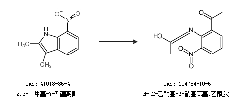 2.通过2,3-二甲基-7-硝基吲哚合成N-(2-乙酰基-6-硝基苯基)乙酰胺