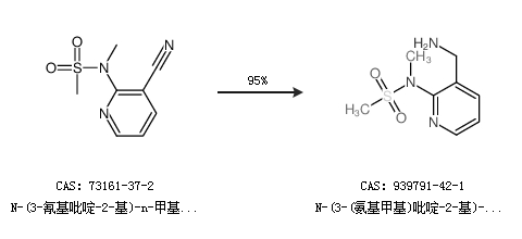 1.通过N-(3-氰基吡啶-2-基)-n-甲基甲烷磺酰胺合成N-(3-(氨基甲基)吡啶-2-基)-N-甲基甲烷磺酰胺,收率约95%;