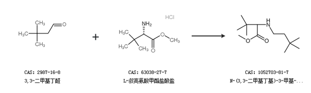 1.通过3,3-二甲基丁醛和L-叔亮氨酸甲酯盐酸盐合成N-(3,3-二甲基丁基)-3-甲基-L-缬氨酸甲酯