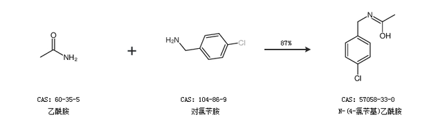 1.通过乙酸和对氯苄胺合成N-(4-氯苄基)乙酰胺,收率约57%;