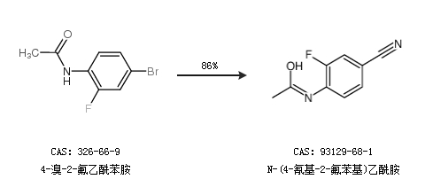2.通过4-溴-2-氟乙酰苯胺合成N-(4-氰基-2-氟苯基)乙酰胺,收率约86%;