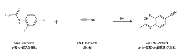 1.通过4-溴-2-氟乙酰苯胺和氰化钠合成N-(4-氰基-2-氟苯基)乙酰胺,收率约90%;