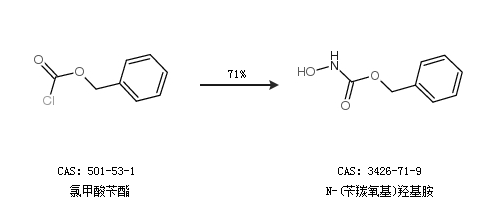 2.通过氯甲酸苄酯合成N-(苄羰氧基)羟基胺,收率约71%;