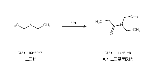 1.通过二乙胺合成N,N-二乙基丙酰胺,收率约82%;
