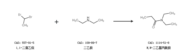 2.通过1,1-二溴乙烷和二乙胺合成N,N-二乙基丙酰胺