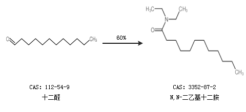 1.通过十二醛合成N,N-二乙基十二胺,收率约60%;