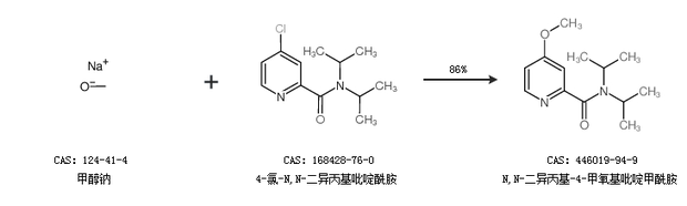 1.通过甲醇钠和4-氯-N,N-二异丙基吡啶酰胺合成N,N-二异丙基-4-甲氧基吡啶甲酰胺,收率约86%;
