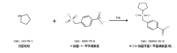 1.通过四氢吡咯和4-硝基-α-甲苯磺酰氯合成N-[(4-硝基苯基)-甲基磺酰基]吡咯烷,收率约73%;