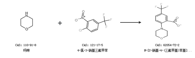 2.通过吗啉和4-氯-3-硝基三氟甲苯合成N-[2-硝基-4-(三氟甲基)苯基]吗啉