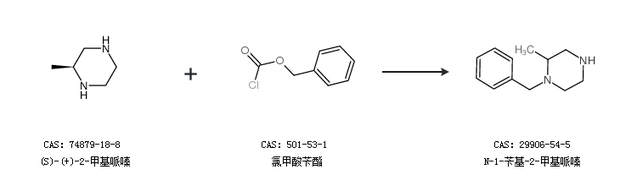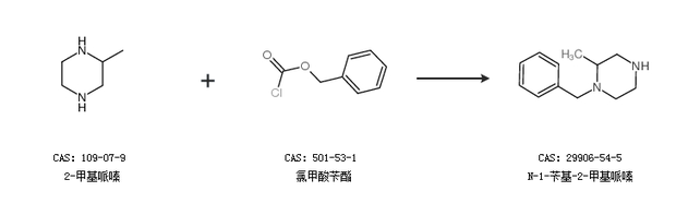 1.通过2-甲基哌嗪和氯甲酸苄酯合成N-1-苄基-2-甲基哌嗪