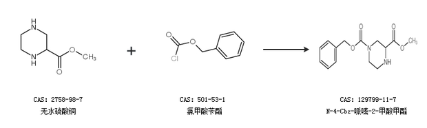 1.通过无水硫酸铜和氯甲酸苄酯合成N-4-Cbz-哌嗪-2-甲酸甲酯