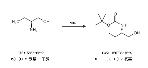 1.通过(S)-(+)-2-氨基-1-丁醇合成N-Boc-(S)-(-)-2-氨基-1-丁醇,收率约99%;