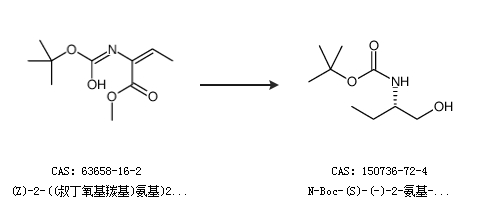 2.通过(Z)-2-((叔丁氧基羰基)氨基)2-丁酸甲酯合成N-Boc-(S)-(-)-2-氨基-1-丁醇