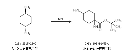 2.通过反式-1,4-环己二胺合成N-Boc-1,4-环己二胺,收率约55%;