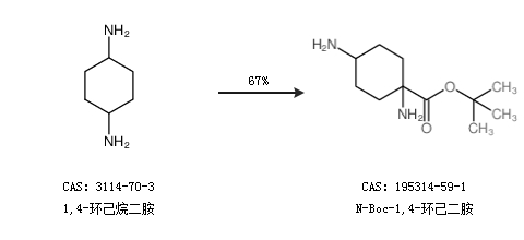 1.通过1,4-环己烷二胺合成N-Boc-1,4-环己二胺,收率约67%;