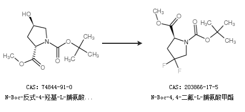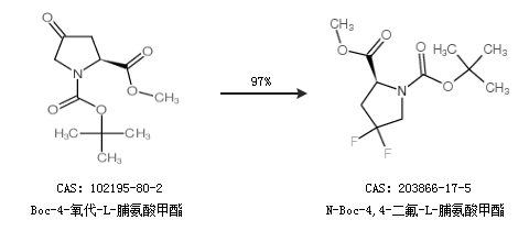 1.通过Boc-4-氧代-L-脯氨酸甲酯合成N-Boc-4,4-二氟-L-脯氨酸甲酯,收率约97%;