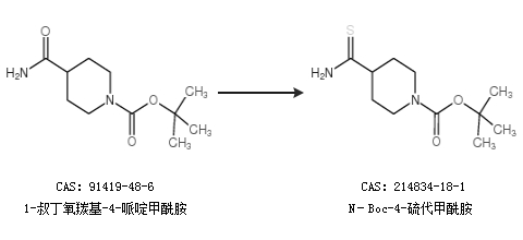 1.通过1-叔丁氧羰基-4-哌啶甲酰胺合成N-Boc-4-硫代甲酰胺,收率约92%;