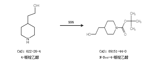 1.通过4-哌啶乙醇合成N-Boc-4-哌啶乙醇,收率约99%;