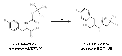 1.通过(S)-N-BOC-4-溴苯丙氨酸合成N-Boc-L-4-溴苯丙氨醇,收率约97%;