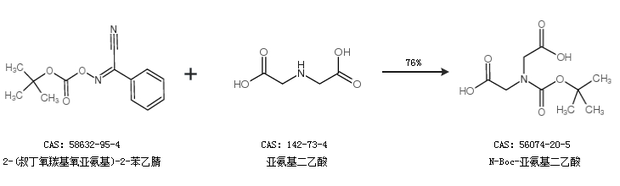2.通过2-(叔丁氧羰基氧亚氨基)-2-苯乙腈和亚氨基二乙酸合成N-Boc-亚氨基二乙酸,收率约76%;