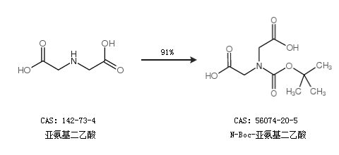 1.通过亚氨基二乙酸合成N-Boc-亚氨基二乙酸,收率约91%;