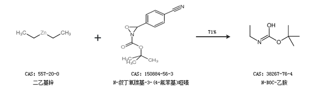 2.通过二乙基锌和N-叔丁氧羰基-3-(4-氰苯基)哑嗪合成N-BOC-乙胺,收率约71%;