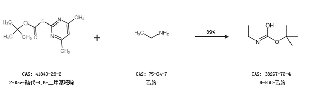 1.通过2-Boc-硫代-4,6-二甲基嘧啶和乙胺合成N-BOC-乙胺,收率约89%;