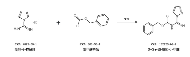 1.通过吡唑-1-羧酰胺和氯甲酸苄酯合成N-Cbz-1H-吡咯-1-甲眯,收率约93%;