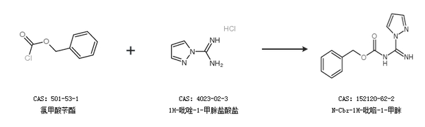 2.通过氯甲酸苄酯和1H-吡唑-1-甲脒盐酸盐合成N-Cbz-1H-吡咯-1-甲眯