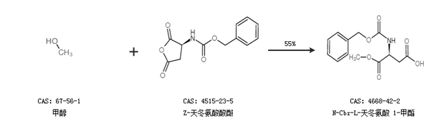 1.通过甲醇和Z-天冬氨酸酸酐合成N-Cbz-L-天冬氨酸 1-甲酯,收率约55%;