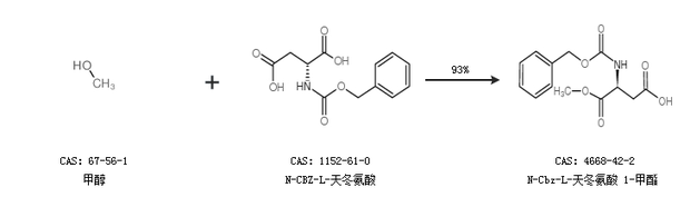 2.通过甲醇和N-CBZ-L-天冬氨酸合成N-Cbz-L-天冬氨酸 1-甲酯,收率约93%;