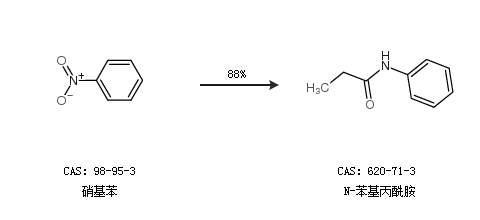 1.通过硝基苯合成N-苯基丙酰胺,收率约88%;