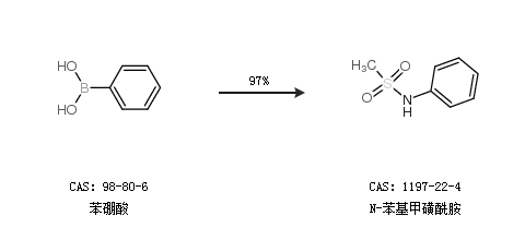 2.通过苯硼酸合成N-苯基甲磺酰胺,收率约97%;