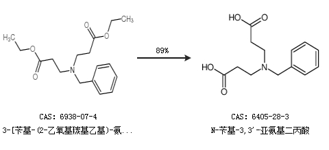 1.通过3-[苄基-(2-乙氧基羰基乙基)-氨基]-丙酸乙酯合成N-苄基-3,3''-亚氨基二丙酸,收率约89%;