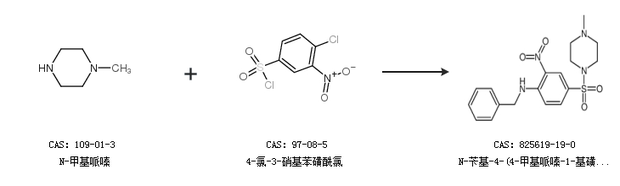 1.通过N-甲基哌嗪和4-氯-3-硝基苯磺酰氯合成N-苄基-4-(4-甲基哌嗪-1-基磺酰基)-2-硝基苯胺