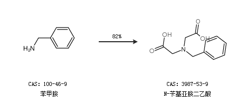 1.通过苯甲胺合成N-苄基亚胺二乙酸,收率约82%;