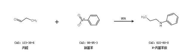 1.通过丙醛和硝基苯合成N-丙基苯胺,收率约95%;