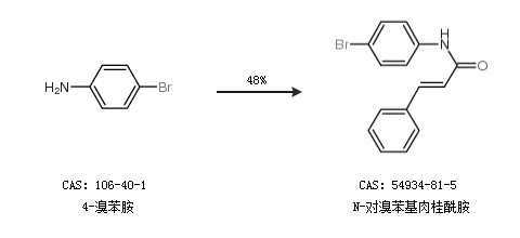 2.通过4-溴苯胺合成N-对溴苯基肉桂酰胺,收率约48%;